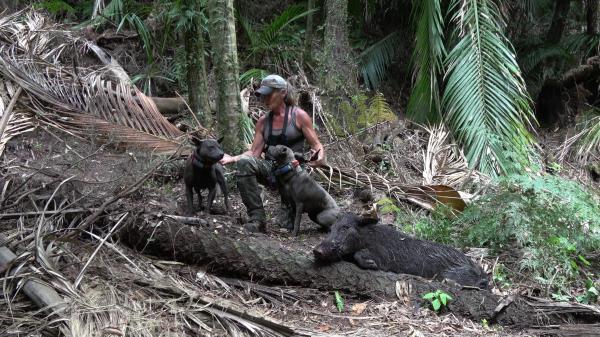 At home he chills out with my old pig dogs, his mother Vogue, and Cheve. They all hang out with me as I potter around doing jobs.They love to be with me, no matter what the day brings, they're my best mates.